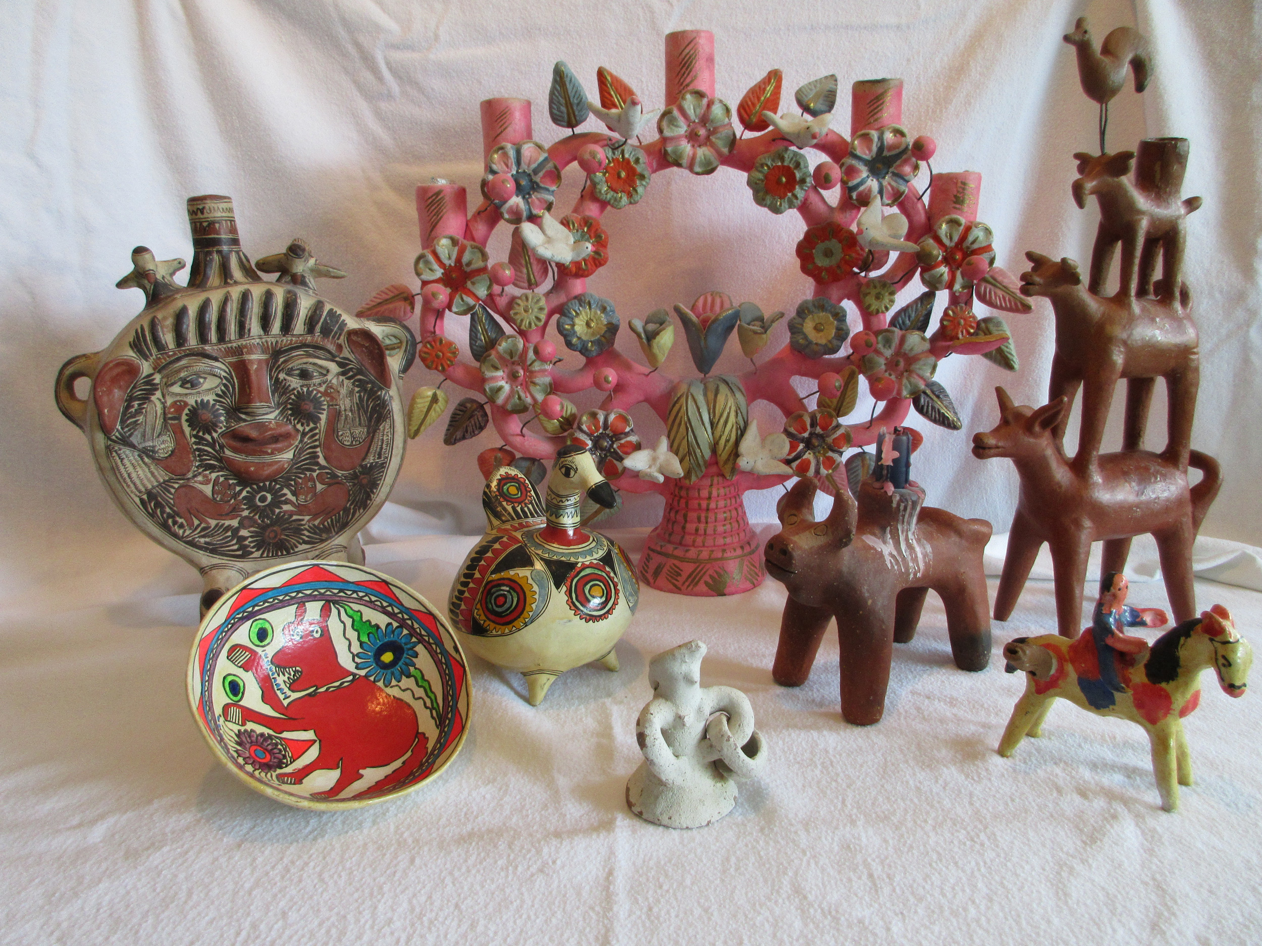 While some of these objects are sold to tourists, they are still very much an intrinsic part of the life of Mexico. Most are made especially for religious fiestas and thus serve no less a ritualistic purpose than they did before the conquest. The most amusing pieces are often times toys. Amongst the more urbanized people, they are intended for children, but amongst the native Indians, they are considered too precious for play and are owned by adults only. In the case of dolls in particular, this attitude recalls primitive man whose dolls often were associated with sacred rites and magical powers. Some pots and dishes are considered purely ornamental. Collected in vast quantities to decorate the homes, they are often the only luxury permitted the poor who must struggle for daily survival.