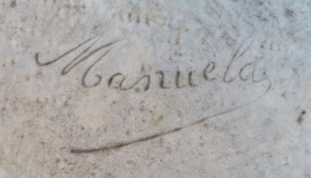 Signée Manuela, la statue était une œuvre de la duchesse d’Uzès qui l’avait d’abord destinée à la chapelle de Saint-Hubert en l’exploitation agricole de La Rolanderie en l’actuelle Saskatchewan. Ce Saint Hubert était une réplique d’une statue que la duchesse avait réalisée pour la basilique du Sacré-Cœur de Montmartre, à Paris. Profitant de la World’s Columbian Exposition de Chicago, la duchesse y montra la réplique mais, au même moment, l’exploitation de La Rolanderie était dissoute. Dilemme que la duchesse résolut en donnant la réplique à l’archevêque de Saint-Boniface qui en fit le point central de la cour d’honneur de l’archevêché. En 1985, la statue était confiée au Musée de Saint-Boniface « à perpétuité ». Elle y est toujours.