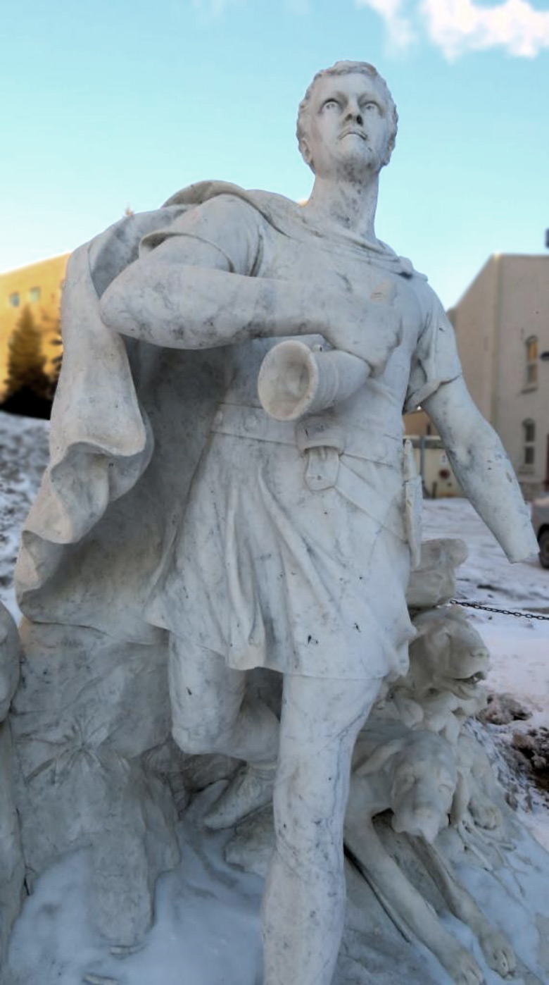 Comme la duchesse lui avait donné la statue pour la cathédrale ou ses églises, comment comprendre que l’archevêque choisit plutôt d’installer l’œuvre dans la cour d’honneur de l’archevêché? Lui trouva-t-il une allure trop profane? Pourtant, saint Hubert, chasseur, n’était-il pas représenté au moment clé de sa vision quand, selon la légende, il aperçut un cerf portant une croix lumineuse entre ses bois? Sa main gauche faisant signe aux chiens de ne pas bondir sur la proie. Serait-ce que la juppette et les jambes nues du jeune homme ne correspondaient pas à l’image de sainteté défendue par l’archevêque?